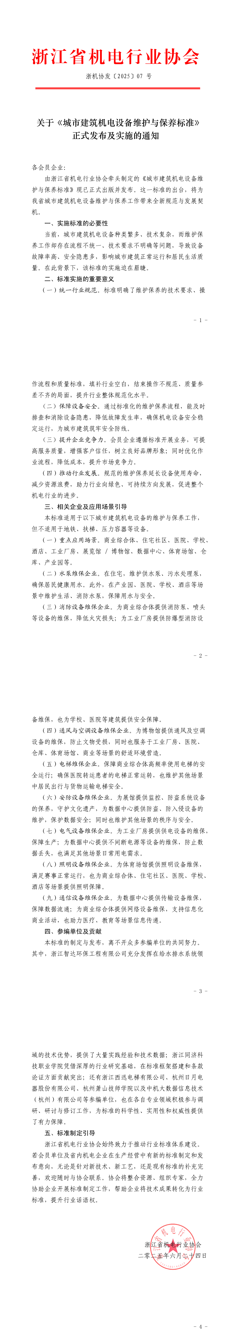 关于《城市建筑机电设备维护与保养标准》 正式发布及实施的通知
